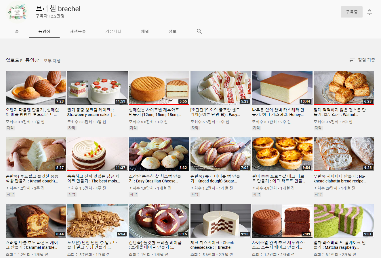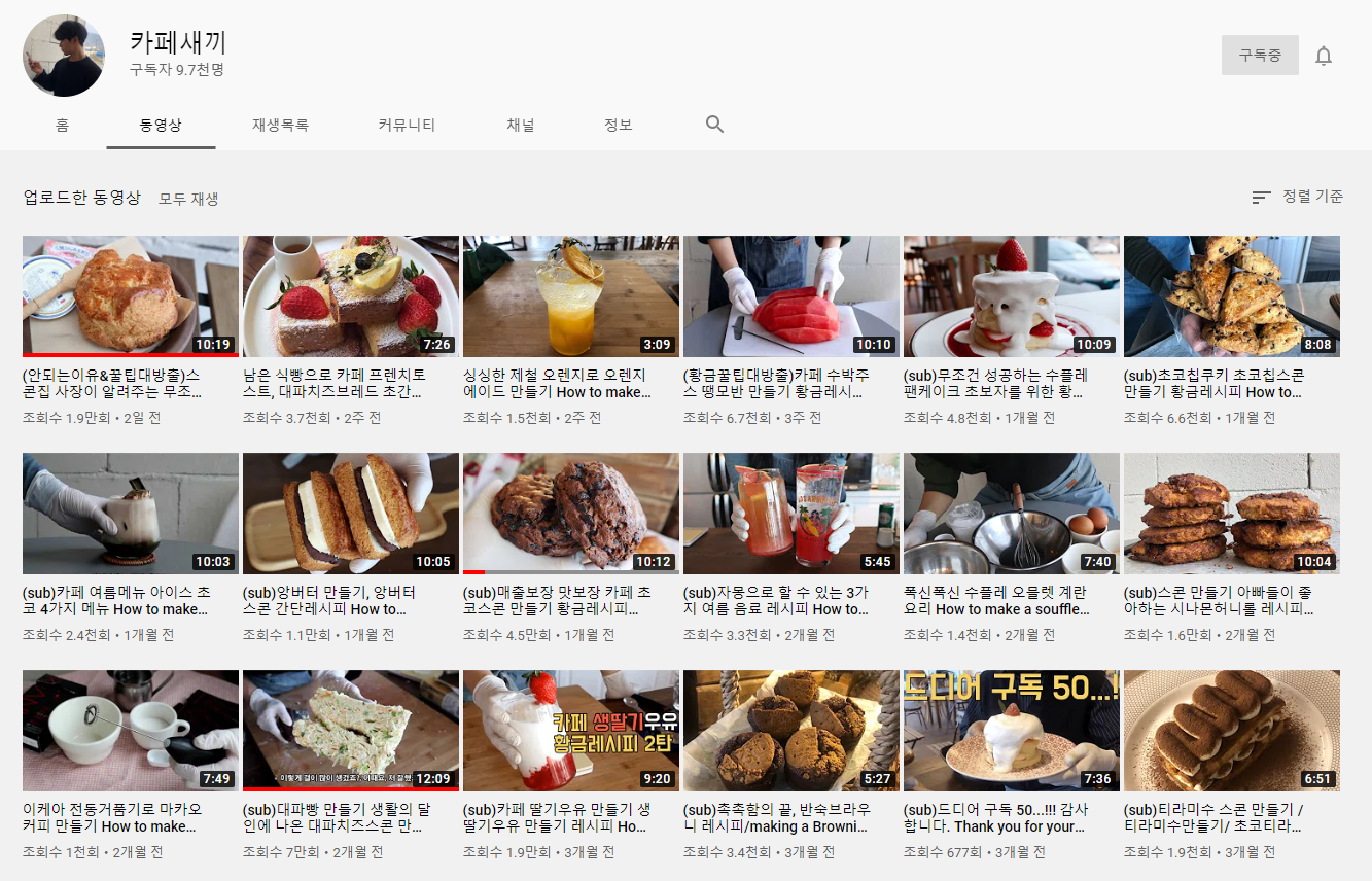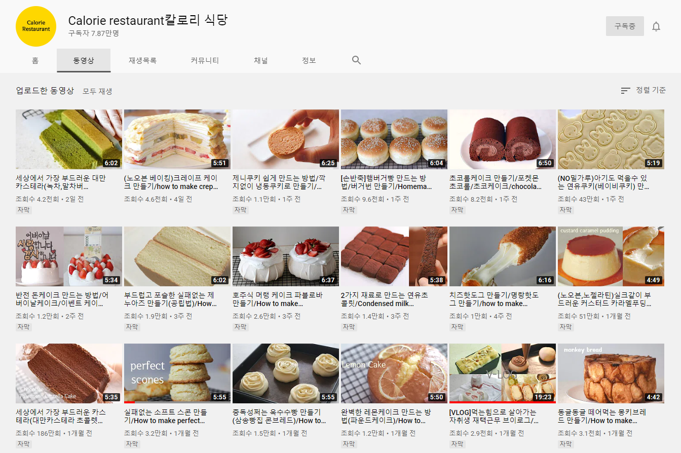 칼로리식당 채널의 영상들을 보다 보면 제빵기가 사고싶어져요. 제과와 제빵, 케이크 등 좋은 레시피들이 많아서 추천해요