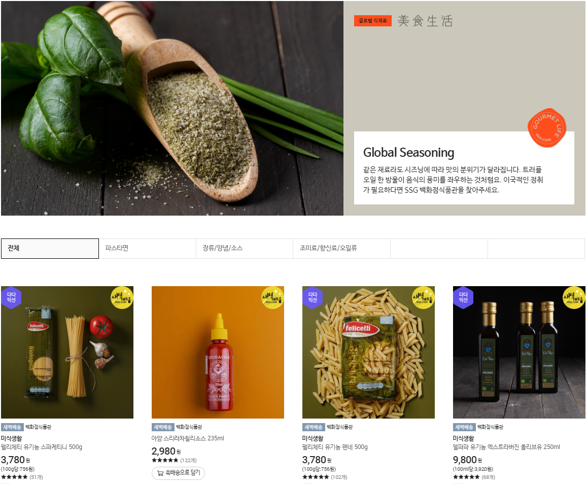 제가 개인적으로 좋아하는 곳이 바로 백화점 식품관인데요, 프리미엄 식재료 뿐만 아니라, 다양한 해외 식품들을 가장 빨리 만나볼수 있는 곳이기 때문이예요. SSG 새벽배송에서는 이런 백화점 식품관의 프리미엄 식품들도 구입할 수 있습니다.