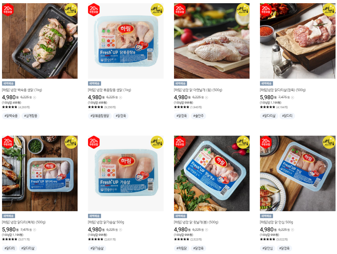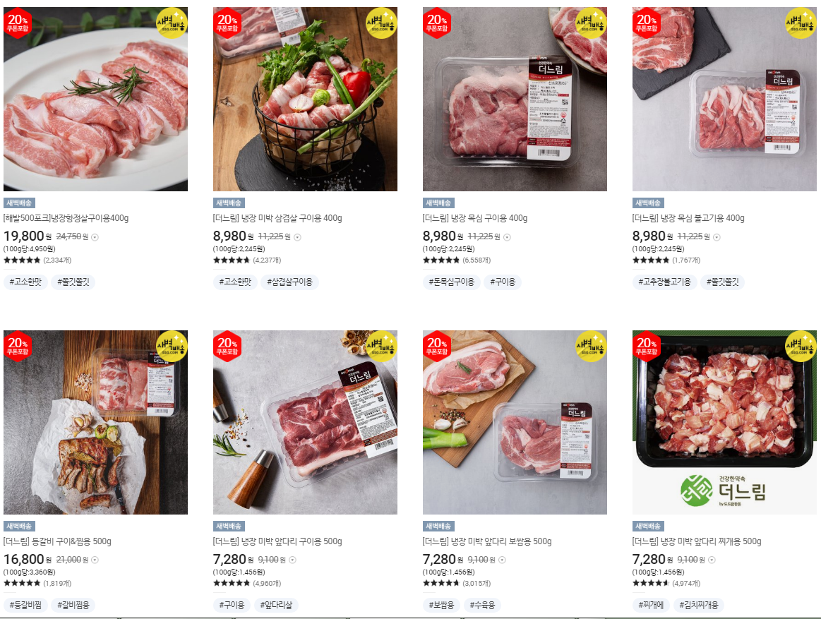 SSG 새벽배송 장보기 서비스를 이용하면서 자주 구매한 것이 돼지고기와 닭고기와 같은 정육류입니다. 다양한 브랜드의 정육제품을 구입할 수 있는데 개인적으로는 돼지고기 종류중에는 "더느림", 닭고기 종류중에는 역시 "하림" 제품이 좋았습니다