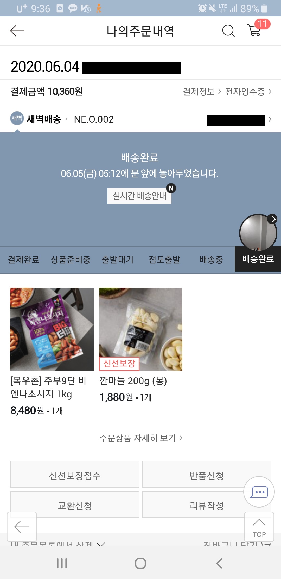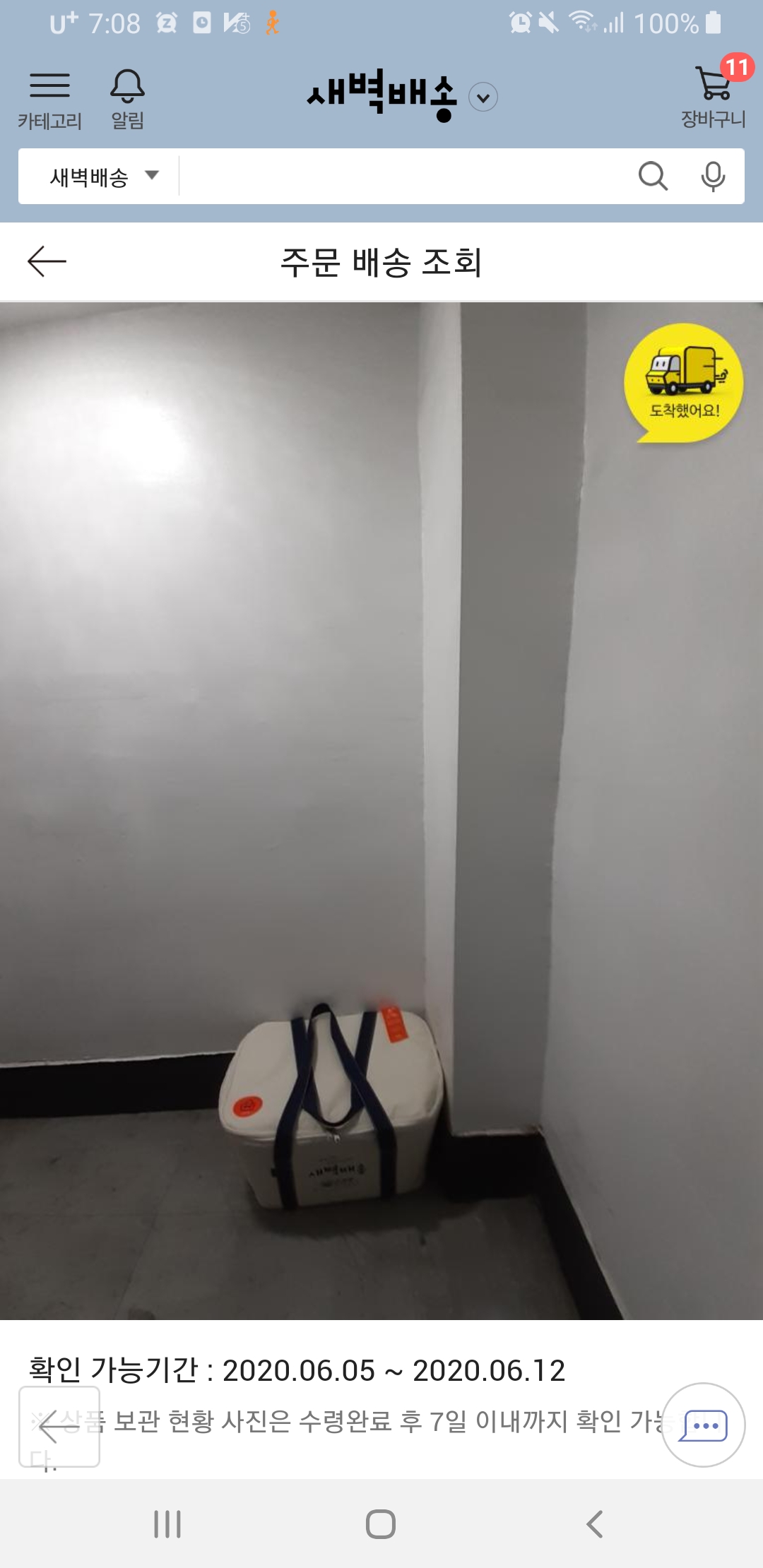 그리고, 바로 오늘 6월 4일. 아침에 일어나서 보니 배송이 완료됐다고 새벽배송 어플에 알림이 떴더라구요. 배송완료 된 사진까지 첨부가 되어 있어서, 현관문을 열어보기전에 사진으로 미리 확인이 가능해요.
