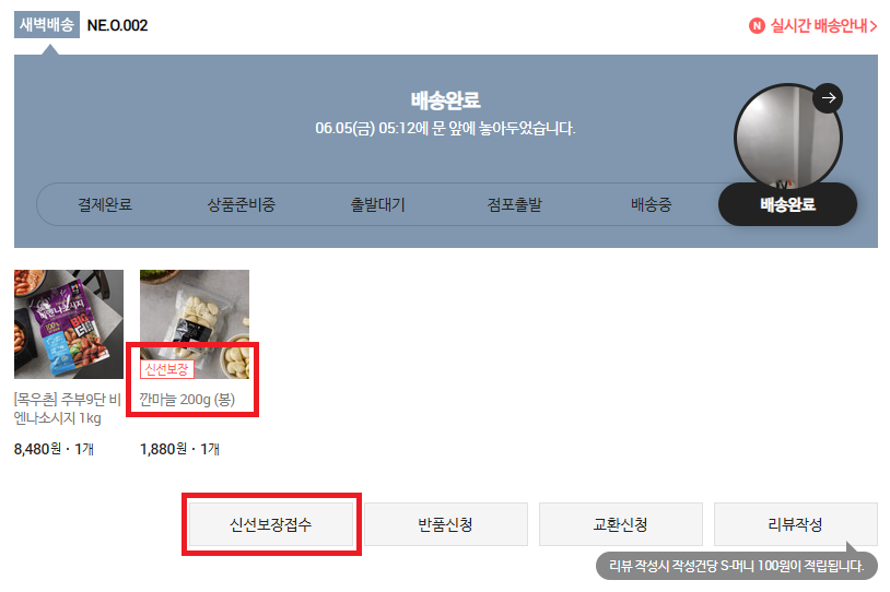 - 신선보장 신청방법 : 신선하지 않은 상품을 받았다면, MY SSG 주문배송조회에서 신선보장접수