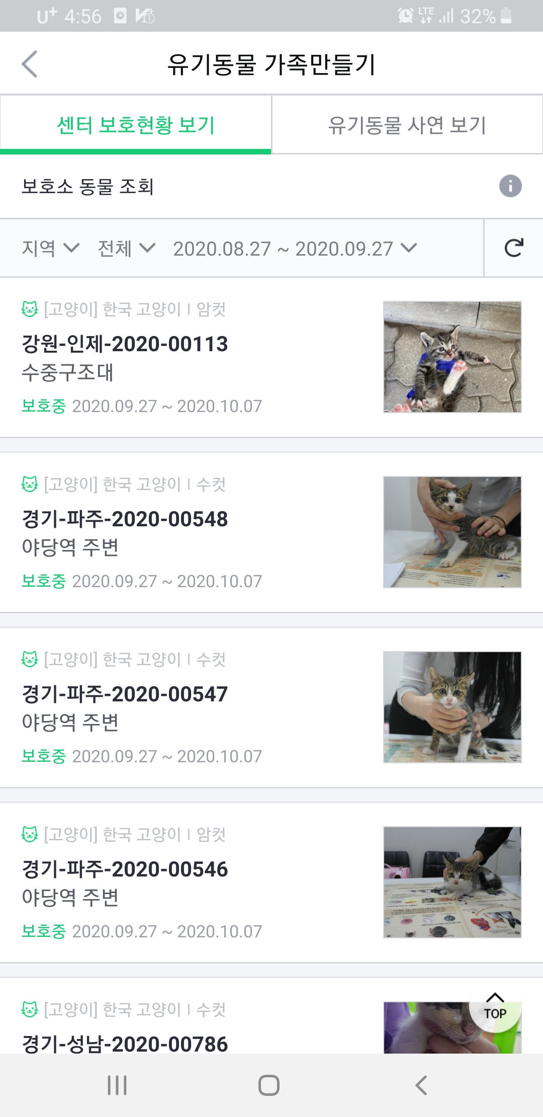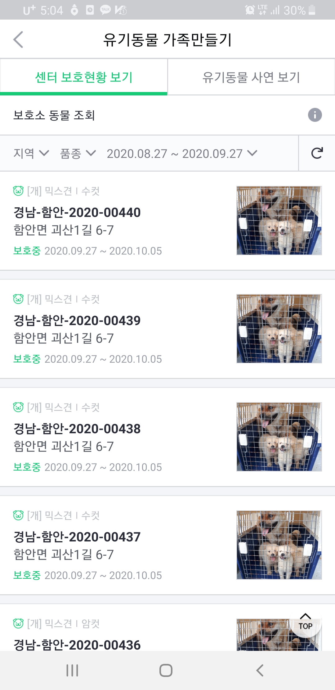 유기동물들의 사연을 둘러보면, 마음이 너무 아프면서 또 동시에 얼른 좋은 가족을 만났으면 좋겠다는 응원을 하게 됩니다.